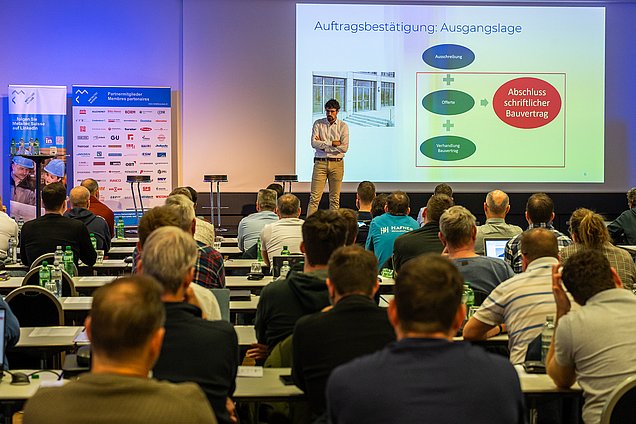 An den zwei intensiven Tagen beleuchteten Referierende aus Recht, Planung und Ausführung zentrale Themen rund um Ausschreibung, Werkvertrag, Montage, Abnahme, Gewährleistung und dem Bauhandwerkerpfandrecht. Der rote Faden bildete dabei das fiktive Projekt «Bellevue», ein moderner Verwaltungs‑ und Wohnkomplex, der typische Fragestellungen aus dem Projektalltag vereint.